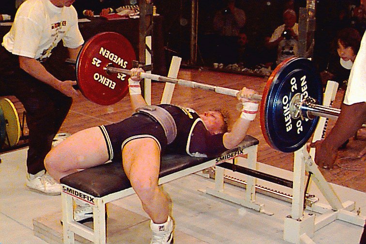 Lutz Gayek (GER) benching 220kg at 82.5kg.
