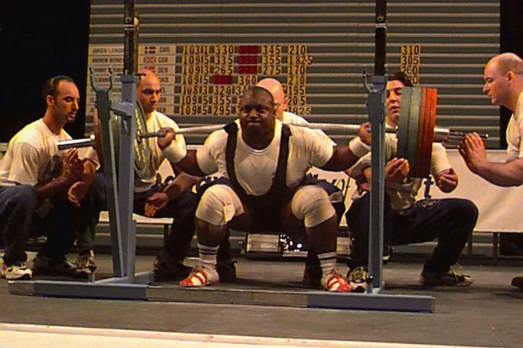 Sam Watt (GBR) attempting a 350kg squat in the