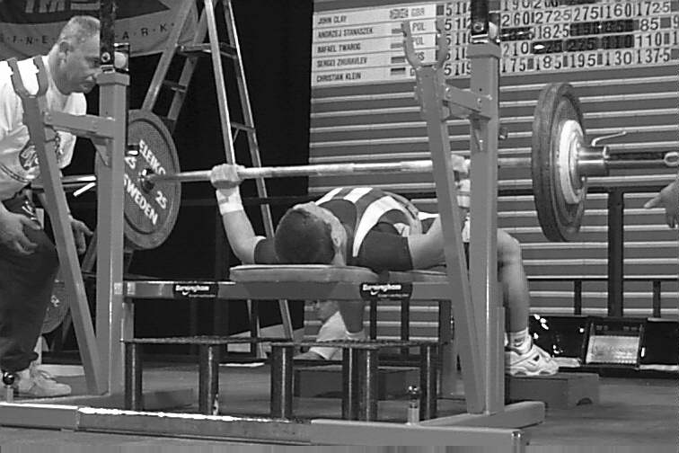 Jerzy Furmanek (POL) benching 235kg in the Men's 100kg class.