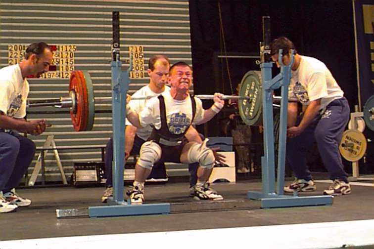 Gerard Tromp (NTH) squatting 242.5kg at 60kg.