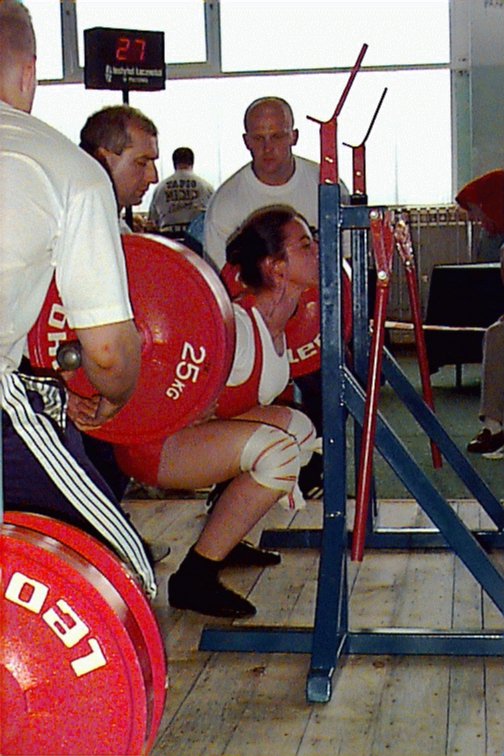 Oxana Belova (RUS) squatting 178.5kg at 52kg.