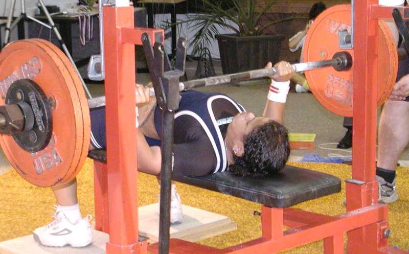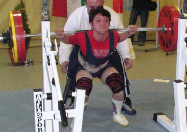 Tamara Althaus (POL) bench pressing a world record 135kg in the women's 56kg class (Köberich photo). |