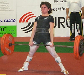 | Oksana Belova (RUS) deadlifting a European Record 195.0kg in the 52kg class at the 2001 European Women's Powerlifting Championships (Köberich photo). |