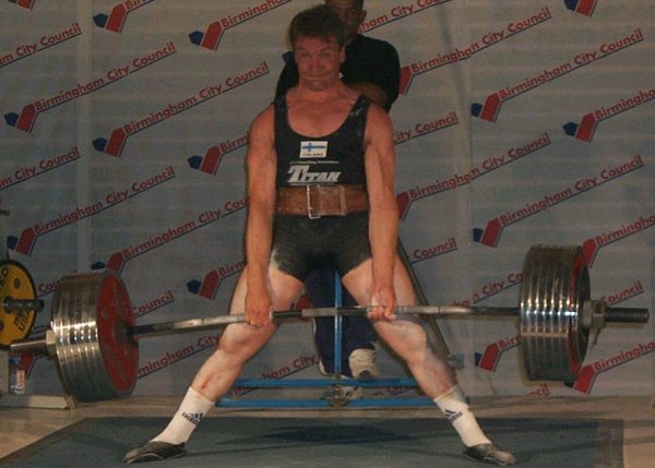 Ismo Lappi (FIN) deadlifting an EU Cup Record 338.5kg in the 75kg class at the 2001 EU Cup (Köberich photo). |